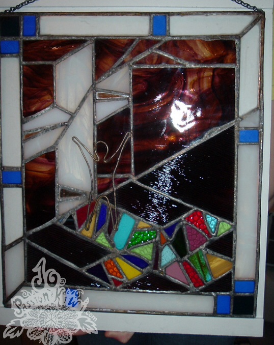 Stained glass. Every follower, when able to transparently portray (God’s) Love, enables the ‘shadow’ of the cross to hold only Light. Flourishing ensues.